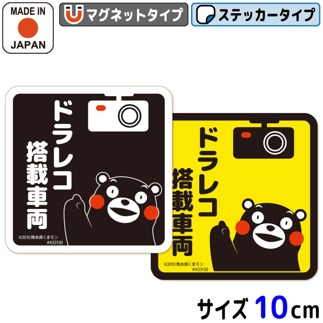 くまモン カーステッカー ドラレコ搭載車両 マグネット ステッカー ブラック イエロー