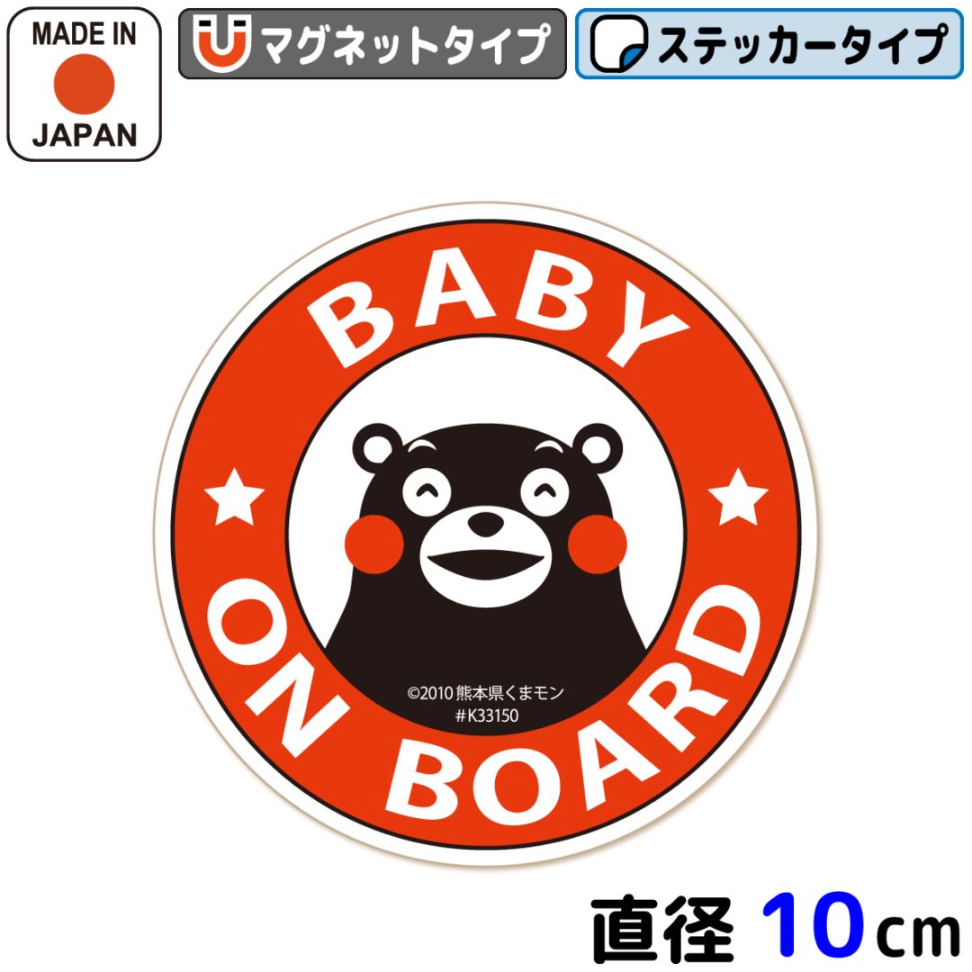 くまモン カーステッカー BABY ON BOARD マグネット ステッカー 円形