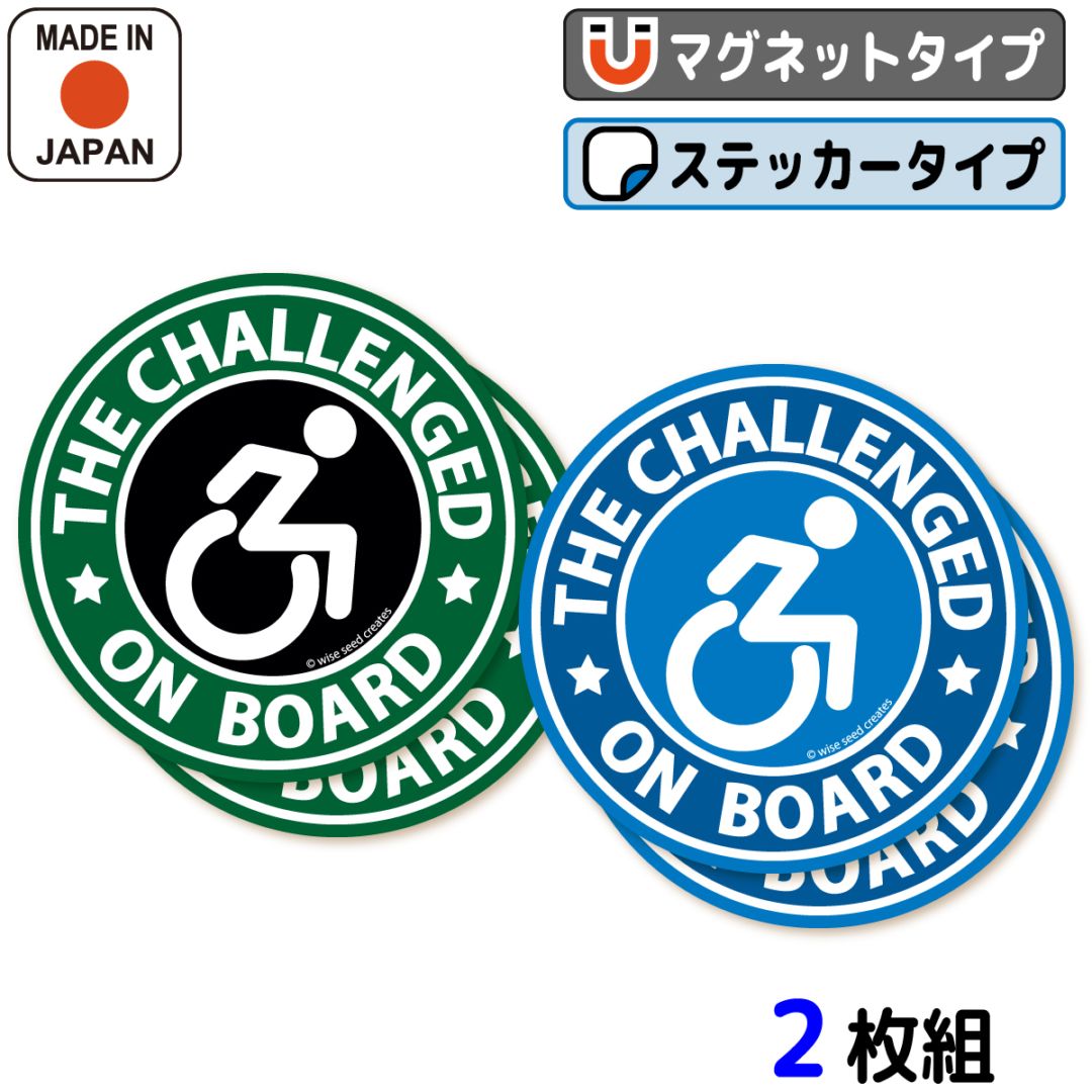 車いすマーク 円形 マグネット ステッカー グリーン ブルー 2枚セット
