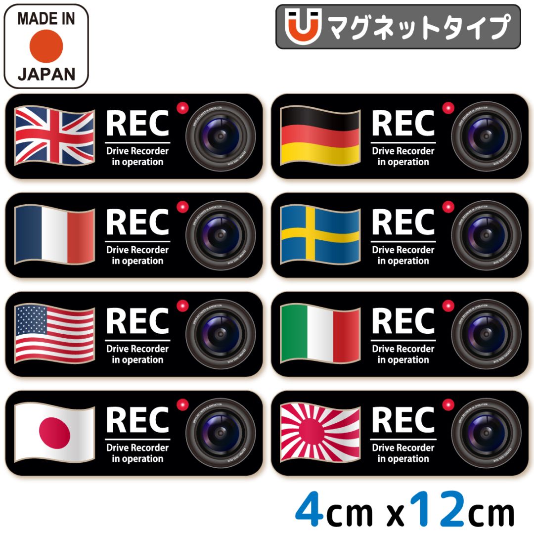 シンプル ドラレコステッカー 国旗 & カメラ マグネット 1枚