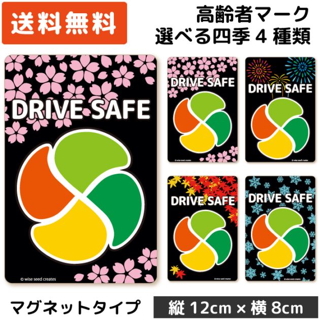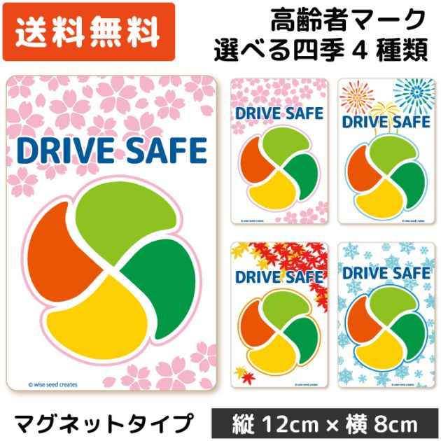 高齢者マーク マグネット 四季デザイン ホワイト 白 さくら・春 花火・夏 紅葉・秋 雪結晶・冬