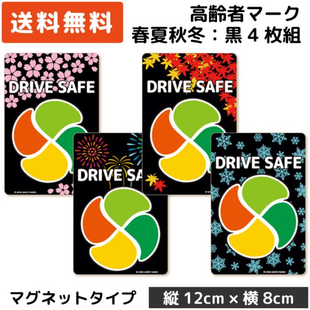 高齢者マーク マグネット 四季デザイン ブラック 黒 春夏秋冬4枚組