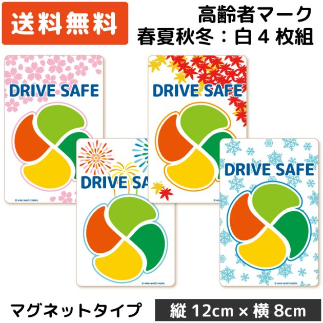 高齢者マーク マグネット 四季デザイン ホワイト 白 春夏秋冬4枚組