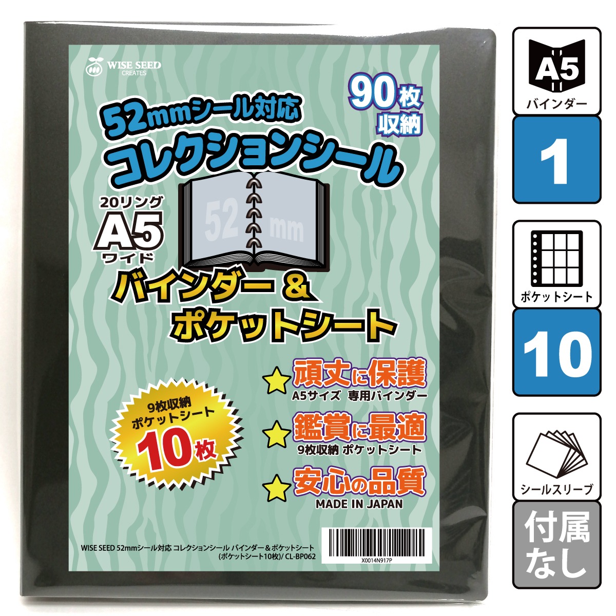 52mmシール 対応 ファイル A5 コレクションシール バインダー&ポケットシート バインダー + ポケットシート ビックリマン 専用 シール入れ 9ポケット フォルダ ホルダー アルバム 52mm 収納 保管 送料無料