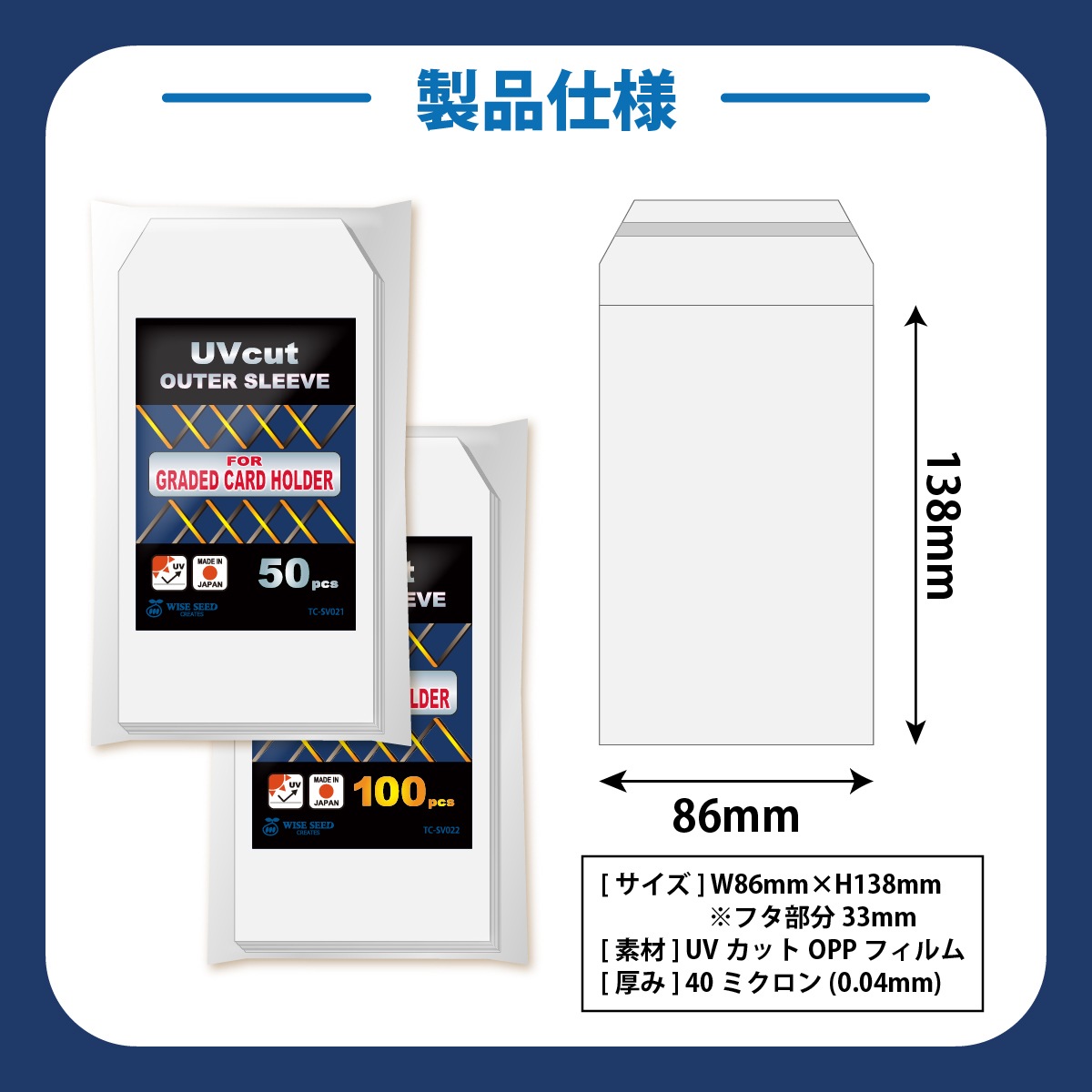 スリーブ本体サイズ:86mm×138mm+フタ部分33mm
