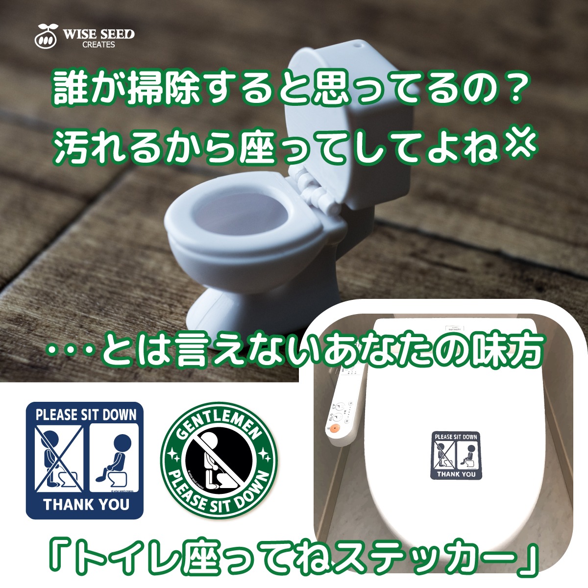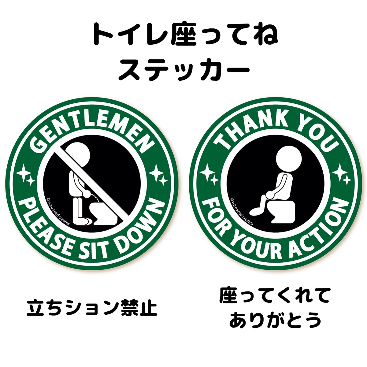 トイレ 座ってね ステッカー 立ちション禁止 & 座ってくれてありがとう (円形タイプ) グリーン 緑 座って 立ちション禁止ステッカー 言いにくい トイレステッカー マーク サイン シール 汚れ防止 英語 おしゃれ かわいい 可愛い シンプル キレイ 来客 日本製