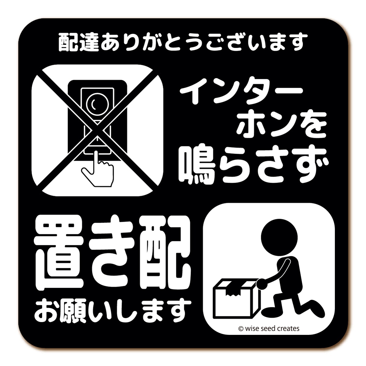 インターホンを鳴らさず 押さず インターホン不要 チャイム不要 で置き配をお願いし、再配達の手間を防止するマグネットサイン。