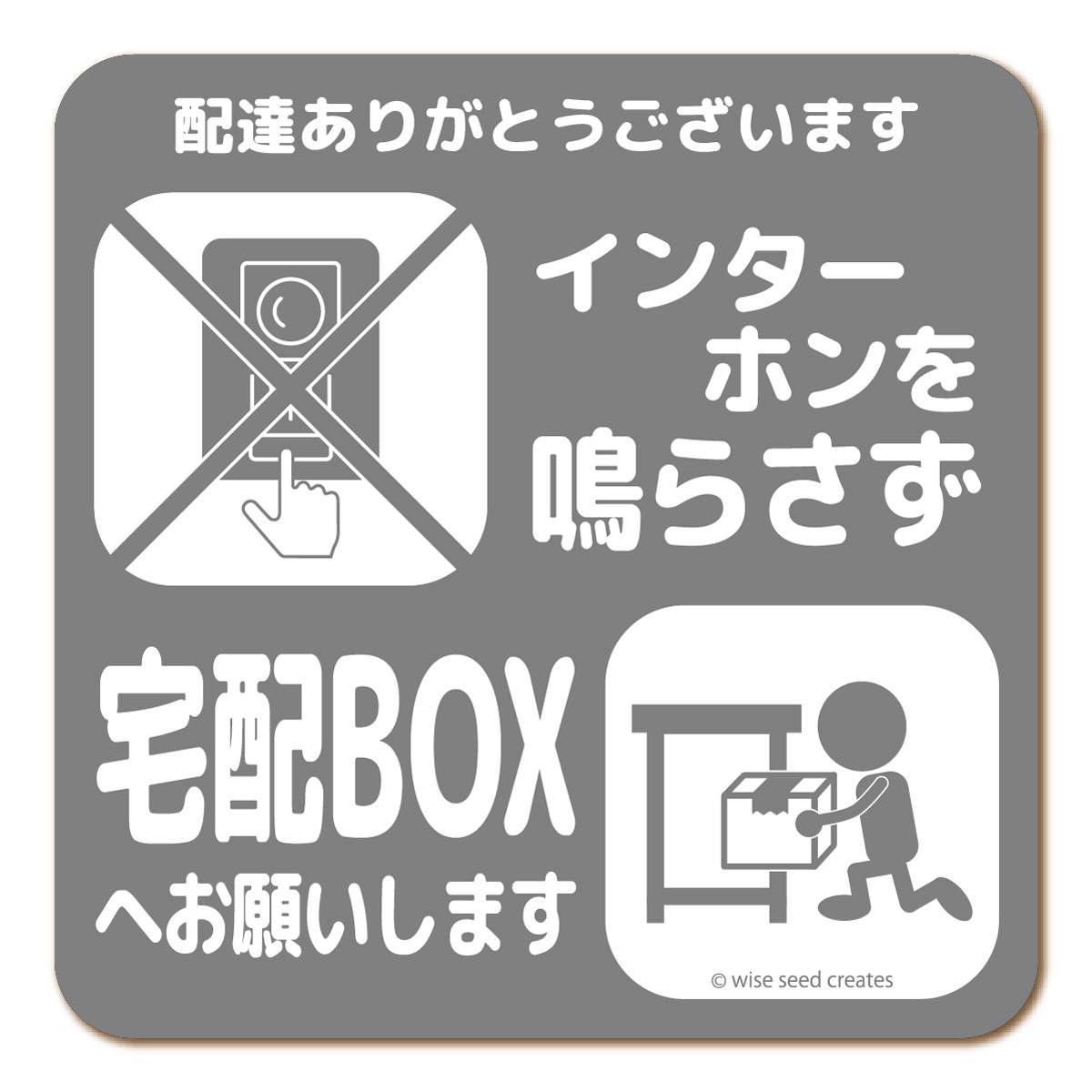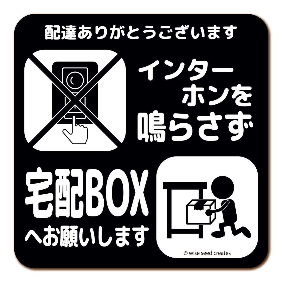 インターホンを鳴らさず 押さず インターホン不要 チャイム不要 で宅配ボックス利用をお願いするマグネットサイン。