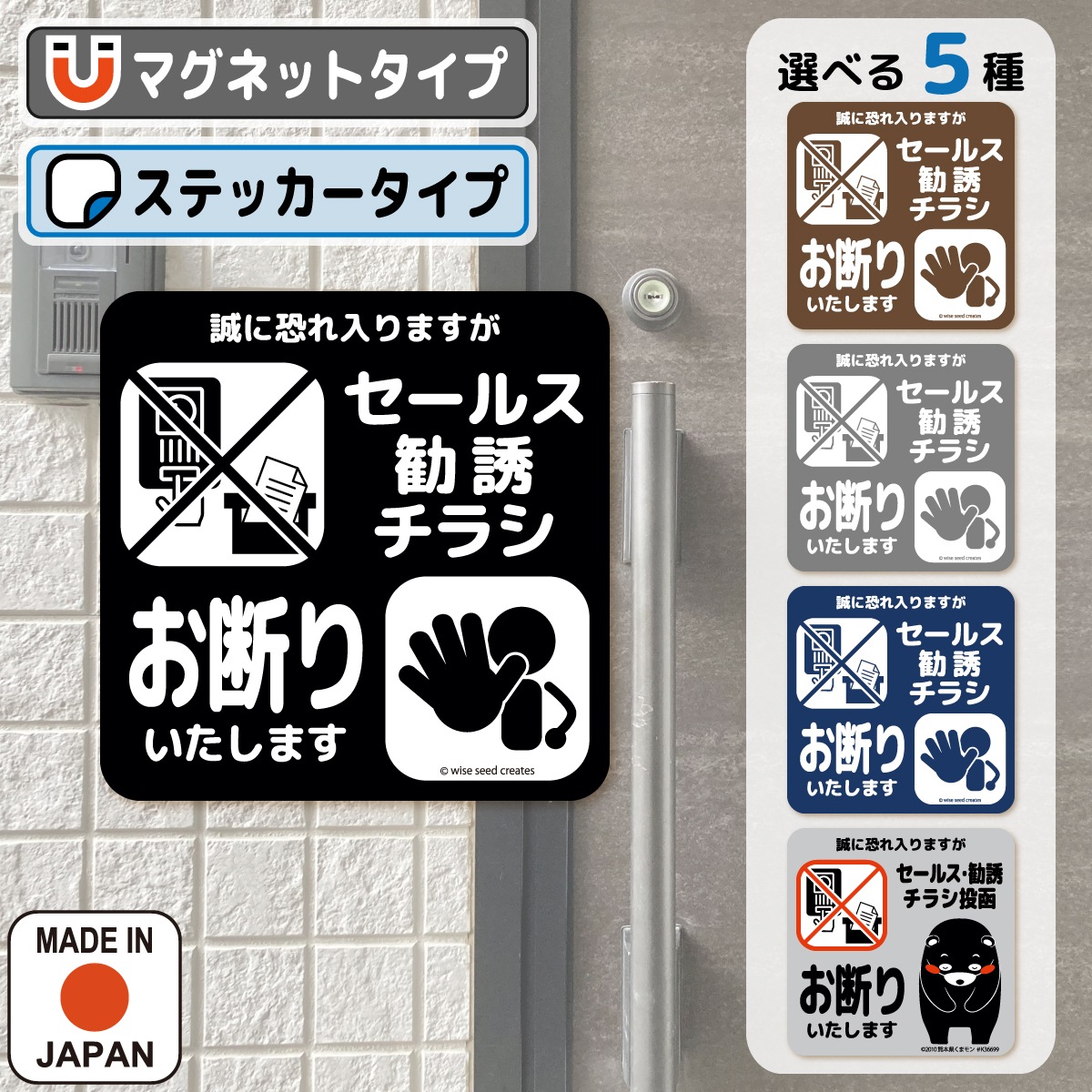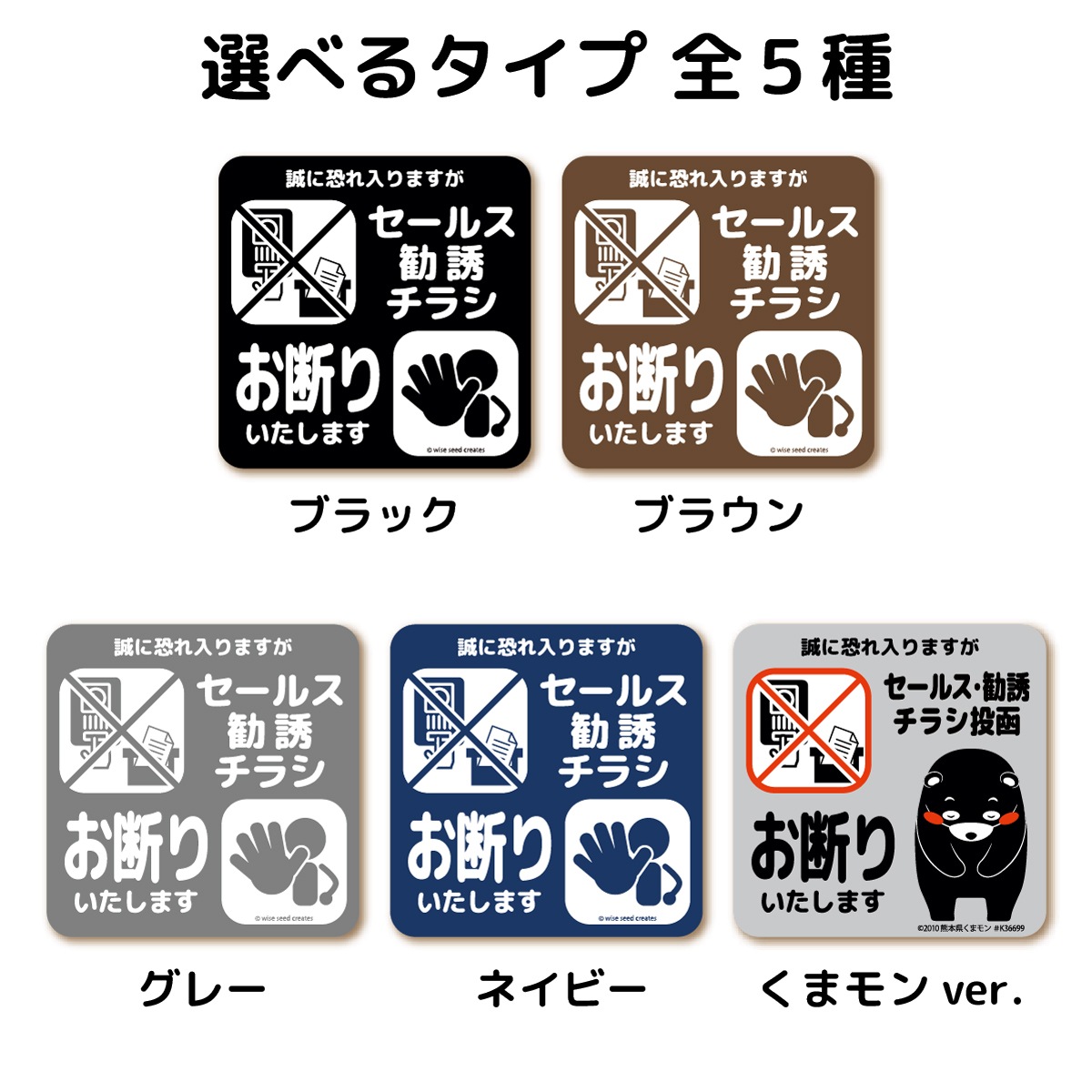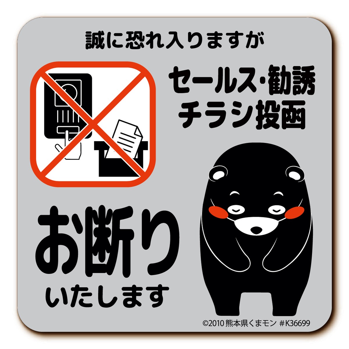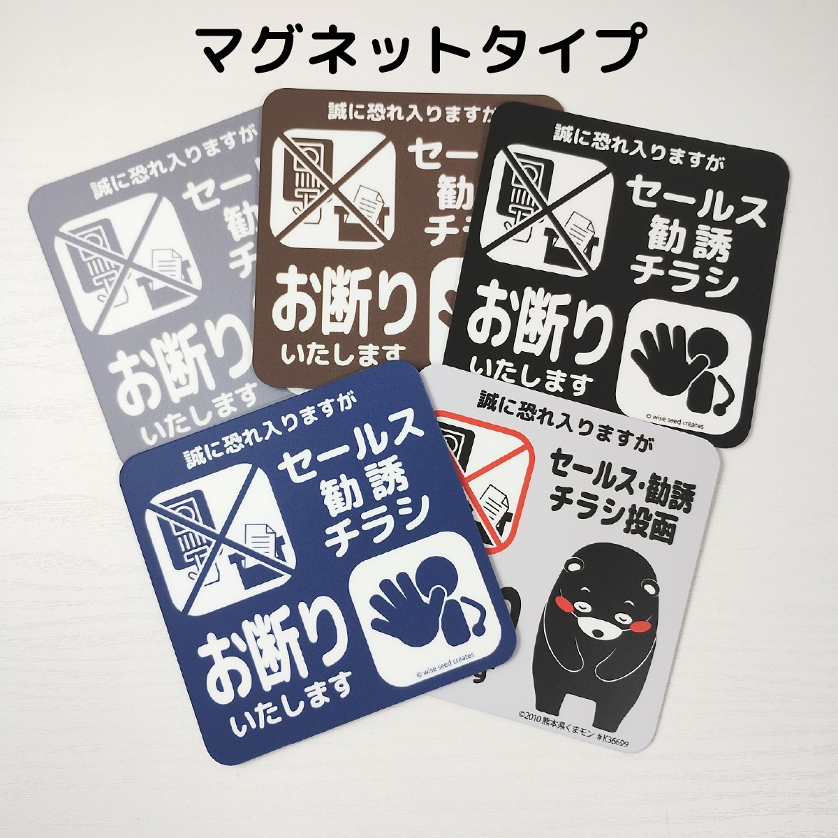 セールス 勧誘 チラシ お断り マグネット ・ ステッカー 全5種 セールスお断り 勧誘お断り チラシお断り 投函 不要 インターホン ポスト 玄関 くまモン かわいい おしゃれ シール 磁石 プレート 警告 立ち入り禁止 1000円ポッキリ 送料無料