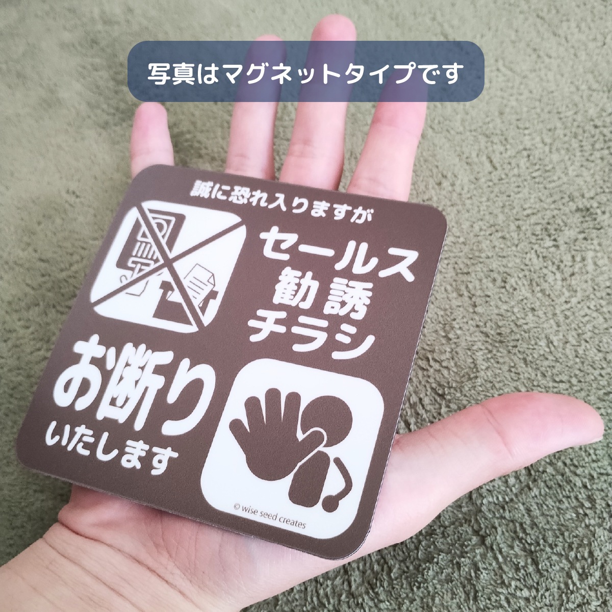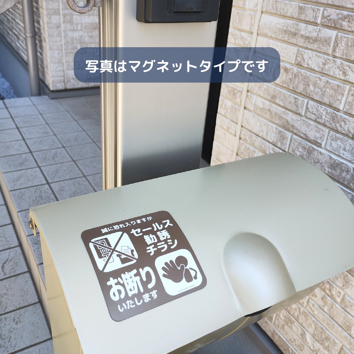 セールス 勧誘 チラシ投函 を お断り する ステッカー マグネットです。貼り付け箇所に合わせて、マグネットタイプ(磁石)と、ステッカータイプ(シール)をお選びいただけます。
