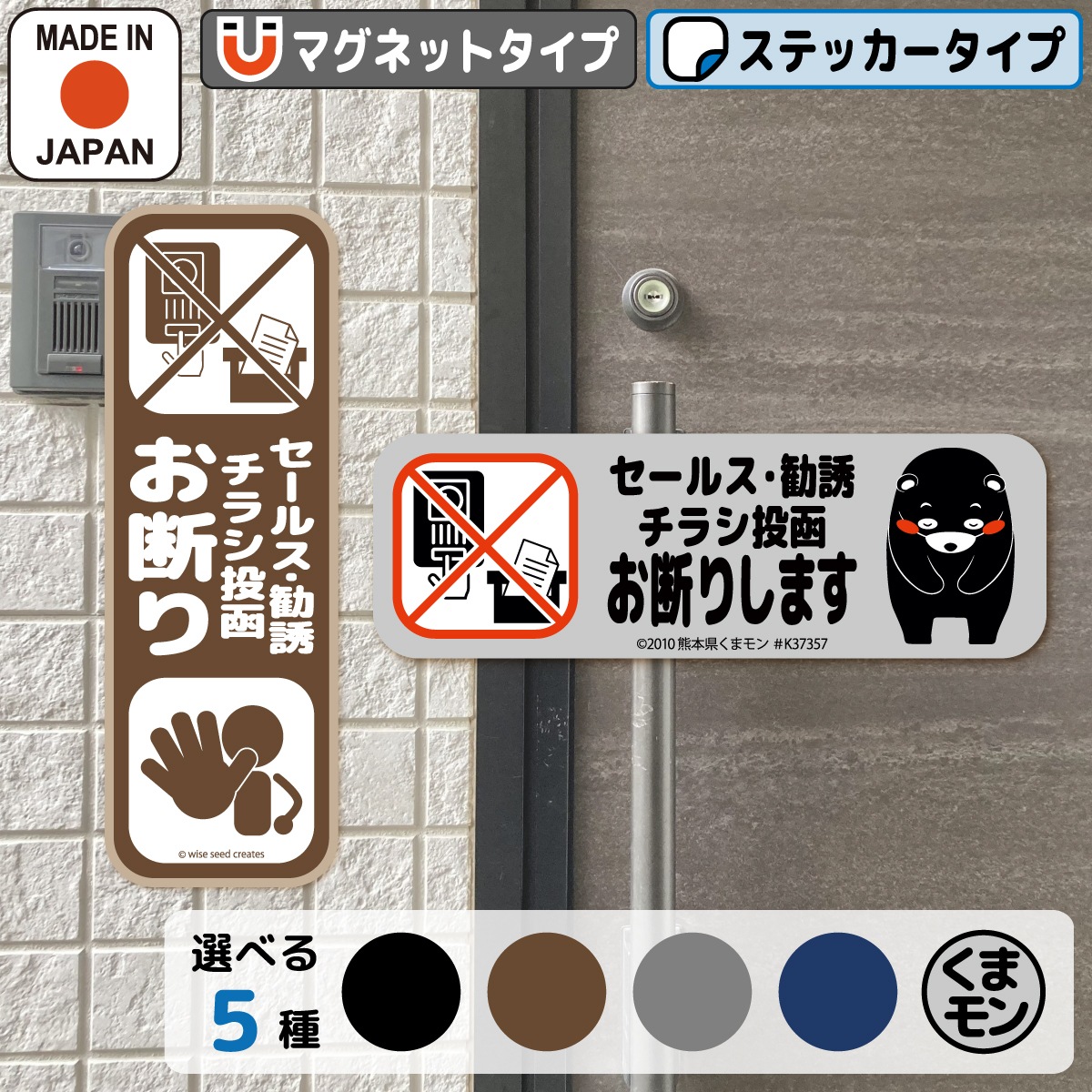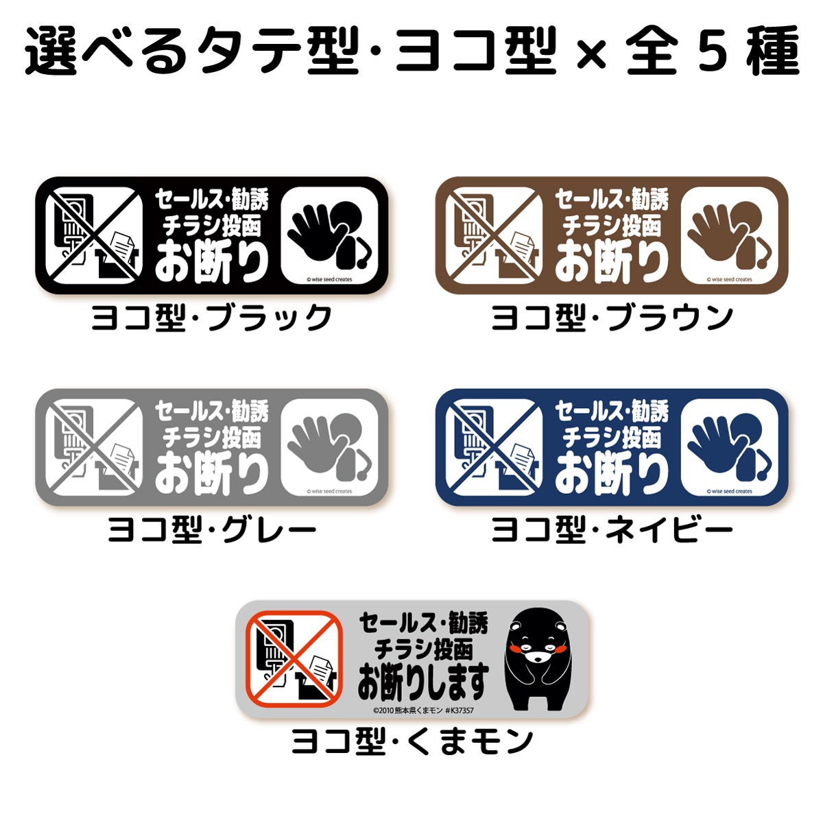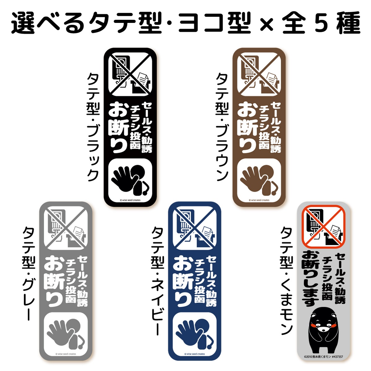 セールス 勧誘 チラシ お断り マグネット ・ ステッカー タテ型・ヨコ型 全5種 セールスお断り 勧誘お断り チラシお断り 投函 不要 インターホン ポスト 玄関 門柱 くまモン おしゃれ かわいい シール 磁石 プレート 警告 立ち入り禁止 送料無料