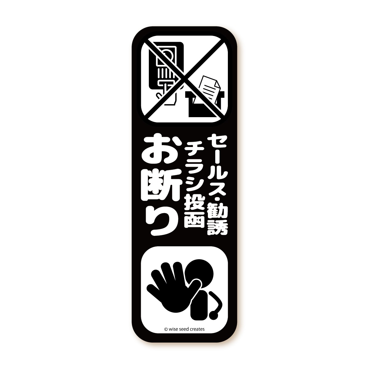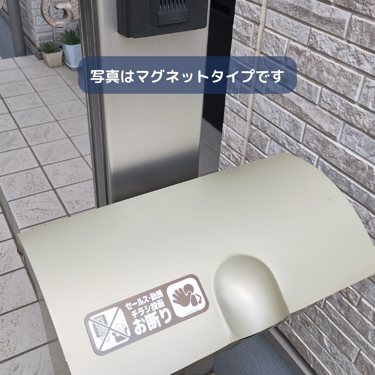 セールス 勧誘 チラシ投函 を お断り する ステッカー マグネットです。貼り付け箇所に合わせて、マグネットタイプ(磁石)と、ステッカータイプ(シール)をお選びいただけます。