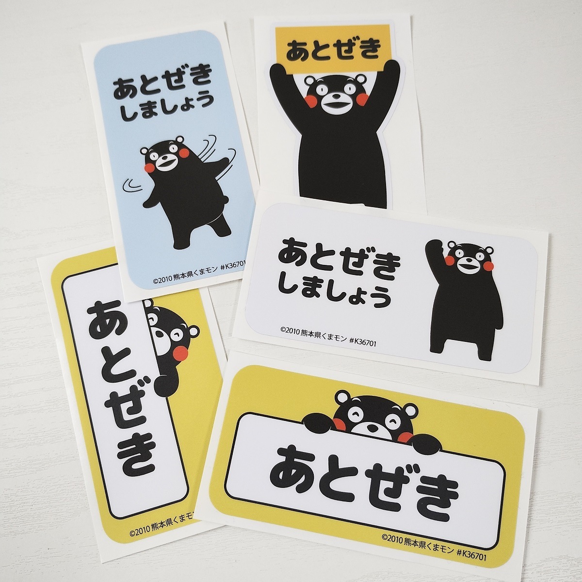 熊本の方言で「開けたら閉めてね」を意味する「あとぜき」。かわいらしいくまモンバージョンのステッカーです