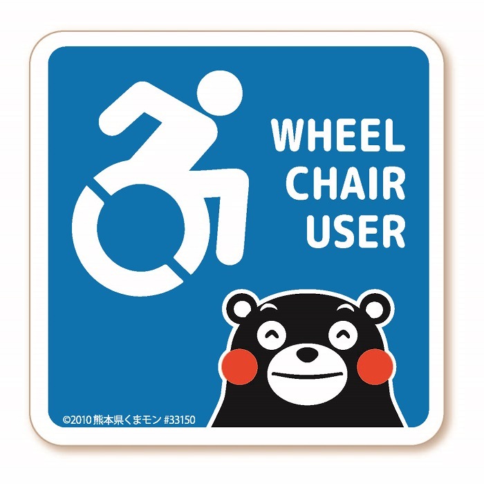 くまモンデザインの車イスマークカーステッカー。注意喚起に、ドレスアップにおすすめです。
