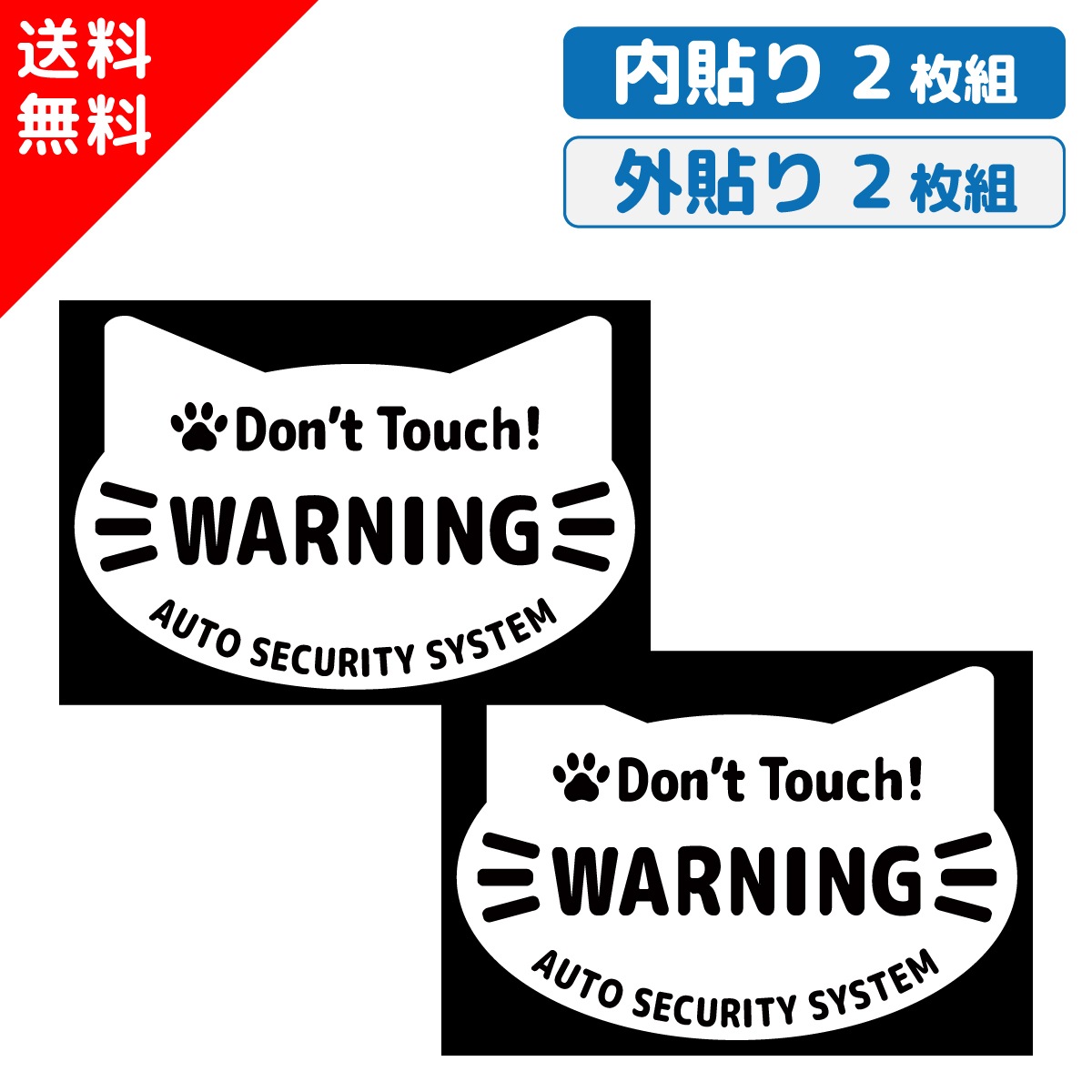 盗難防止 防犯 ステッカー ( 内貼り・外貼り ) キャット 2枚セット シンプル セキュリティ 防犯グッズ カーステッカー ねこ 猫 盗難 車上荒らし いたずら 防止 強盗 空き巣 対策 窓 警告 盗難防止装置 GPS セキュリティー シール 車 窓用 日本製
