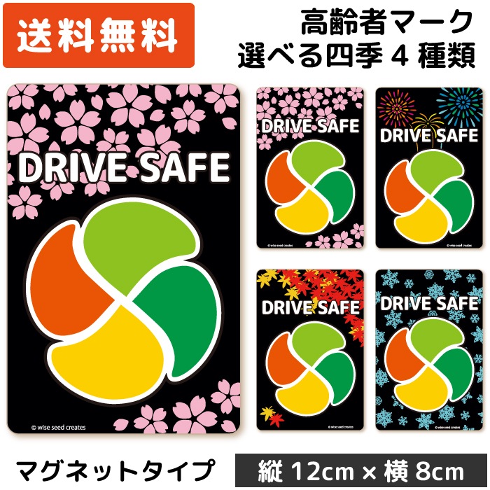 高齢者マーク マグネット 四季デザイン ブラック 黒 さくら・春 花火・夏 紅葉・秋 雪結晶・冬 もみじマーク 高齢者ステッカー 高齢運転者標識 シルバーマーク シニア 安全運転 桜 サクラ SAKURA 磁石 紅葉 日本製 おしゃれ