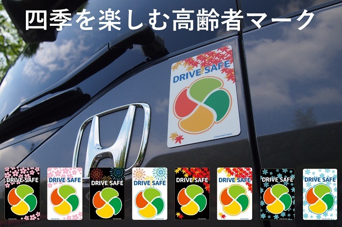 「高齢運転者マークをもっと素敵に、もっと華やかに」をコンセプトに誕生。四季デザインのマグネット4枚組です。